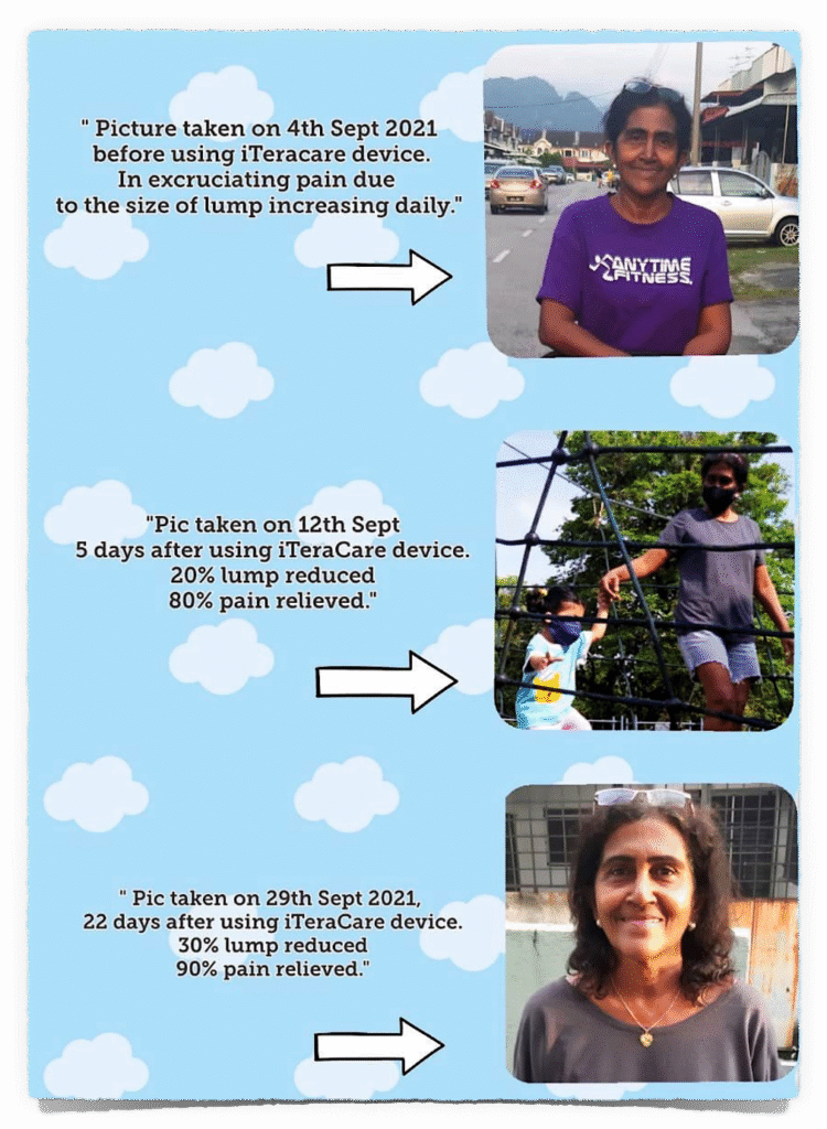 Gambar Bawah Foto diambil pada 29 September 2021. 22 hari setelah menggunakan perangkat iteracare. 30% benjolan berkurang. 90% rasa sakitnya hilang.